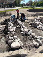 Cadets from Girl Scout Troop 41508 out of Science and Arts Academy in Des Plaines created the stones and designed the path to the Fire Department