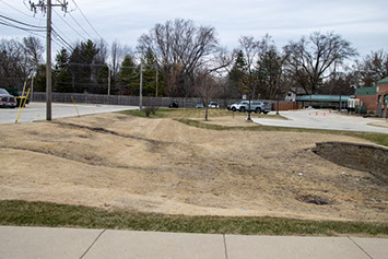 14 East Camp McDonald Road, in-between the Prospect Heights Police and Fire Departments. The project wraps the Police station and continues down Maple Avenue.